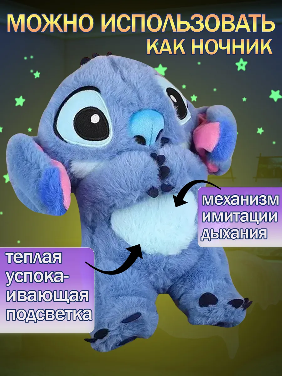 С подвижными элементами и звуковыми, световыми эффектами, дышащая мягкая игрушка Стич станет не только любимым украшением детской комнаты, но и верным другом для вашего малыша.